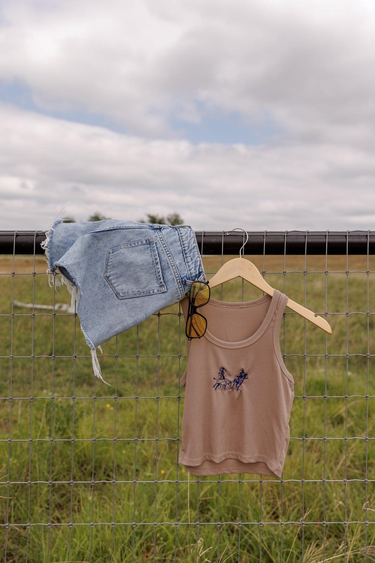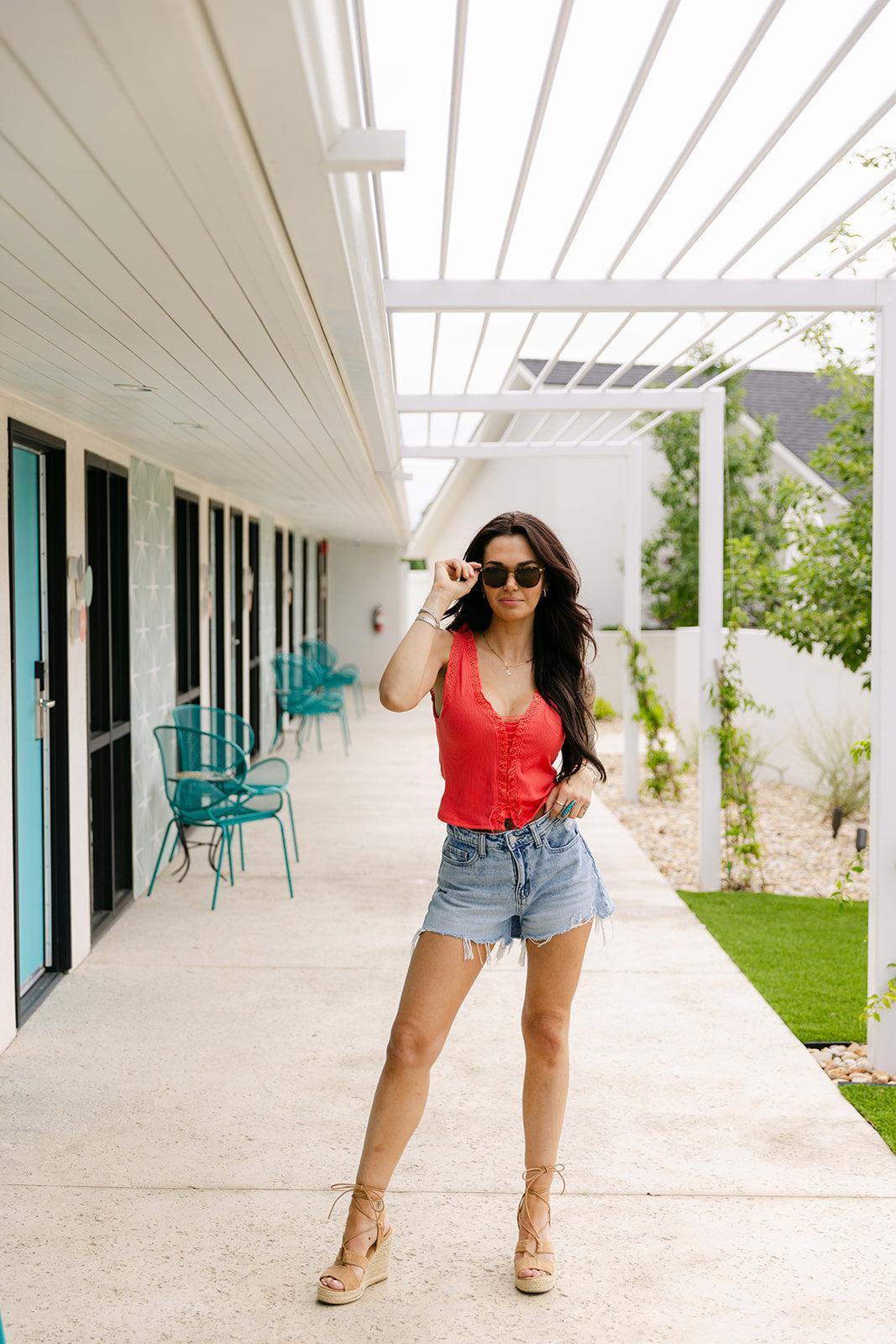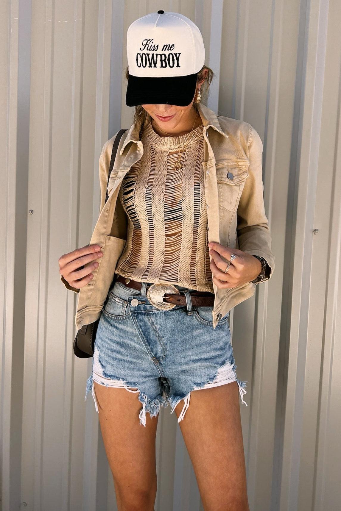Bringing just a touch of “yee-haw” to your summer look with these button down, frey-hemmed shorts that are perfect for any summer festival or just lounging around.