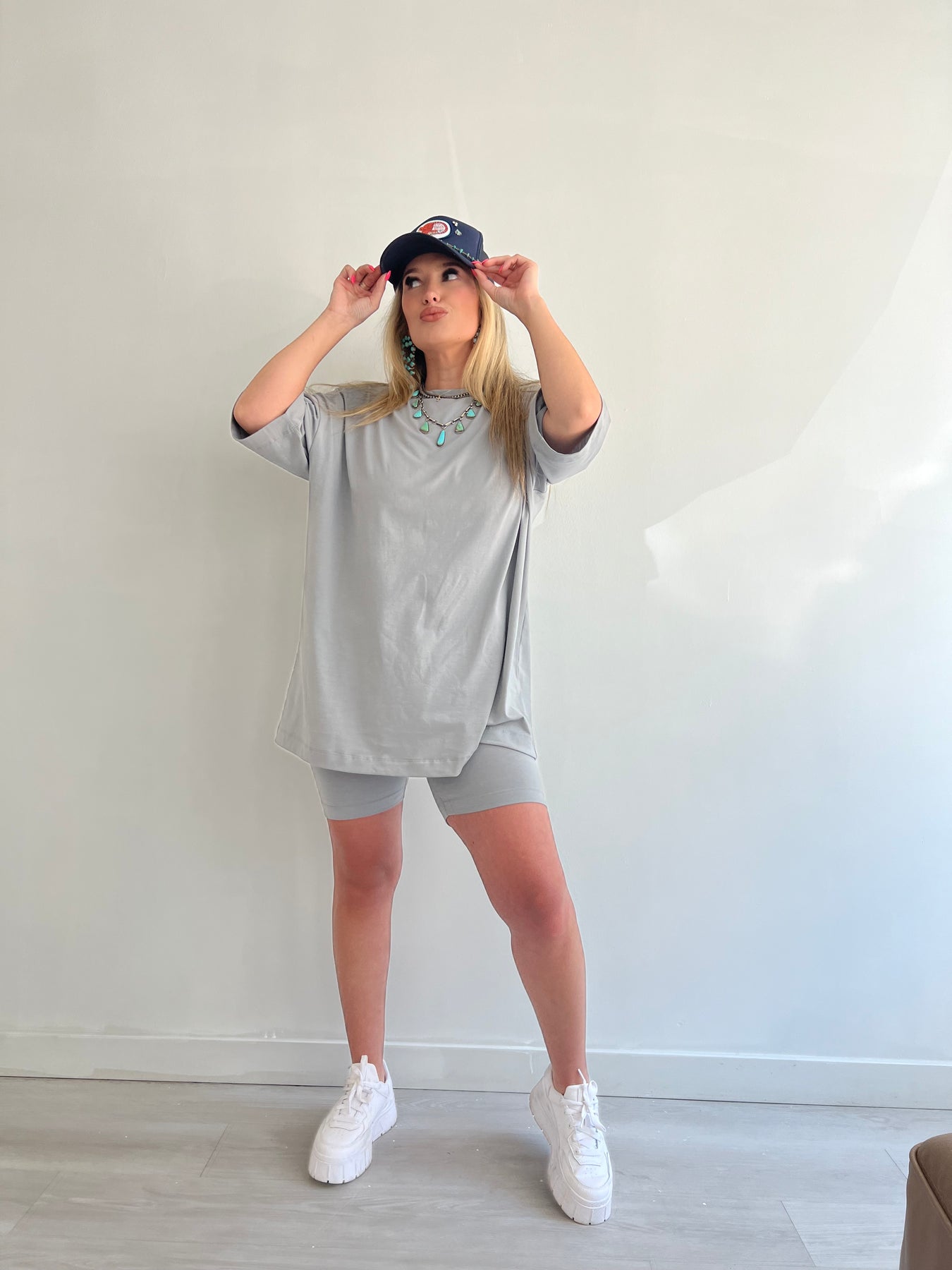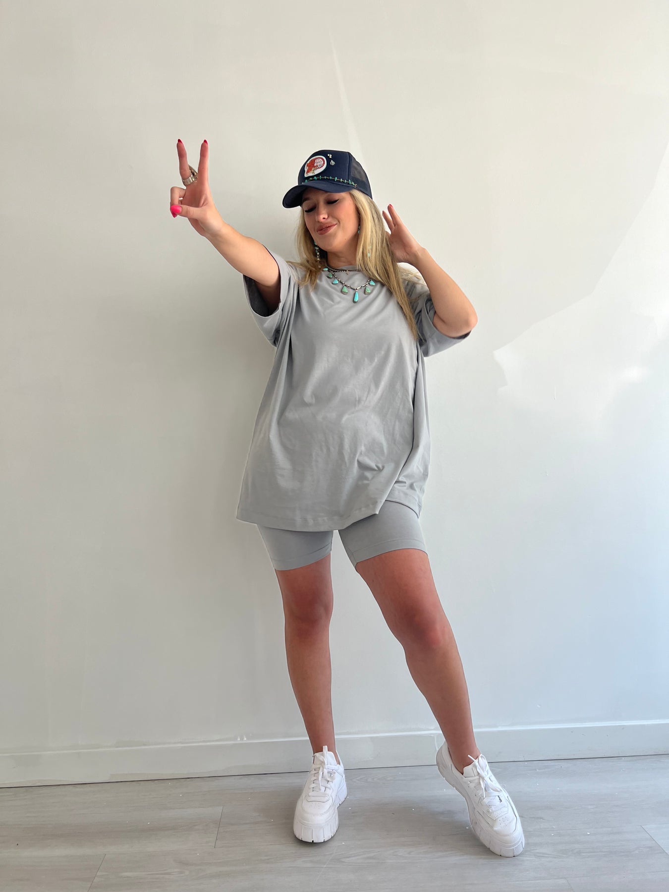 These heather grey fleece shorts feature an elastic waistband, side pockets, and "Good Babes Hunting Club" embroidery. Comfy enough for the couch, cute enough for the stand.
