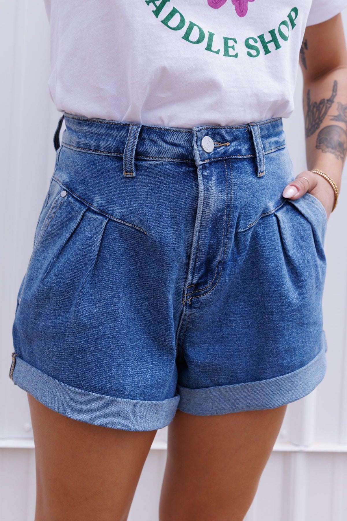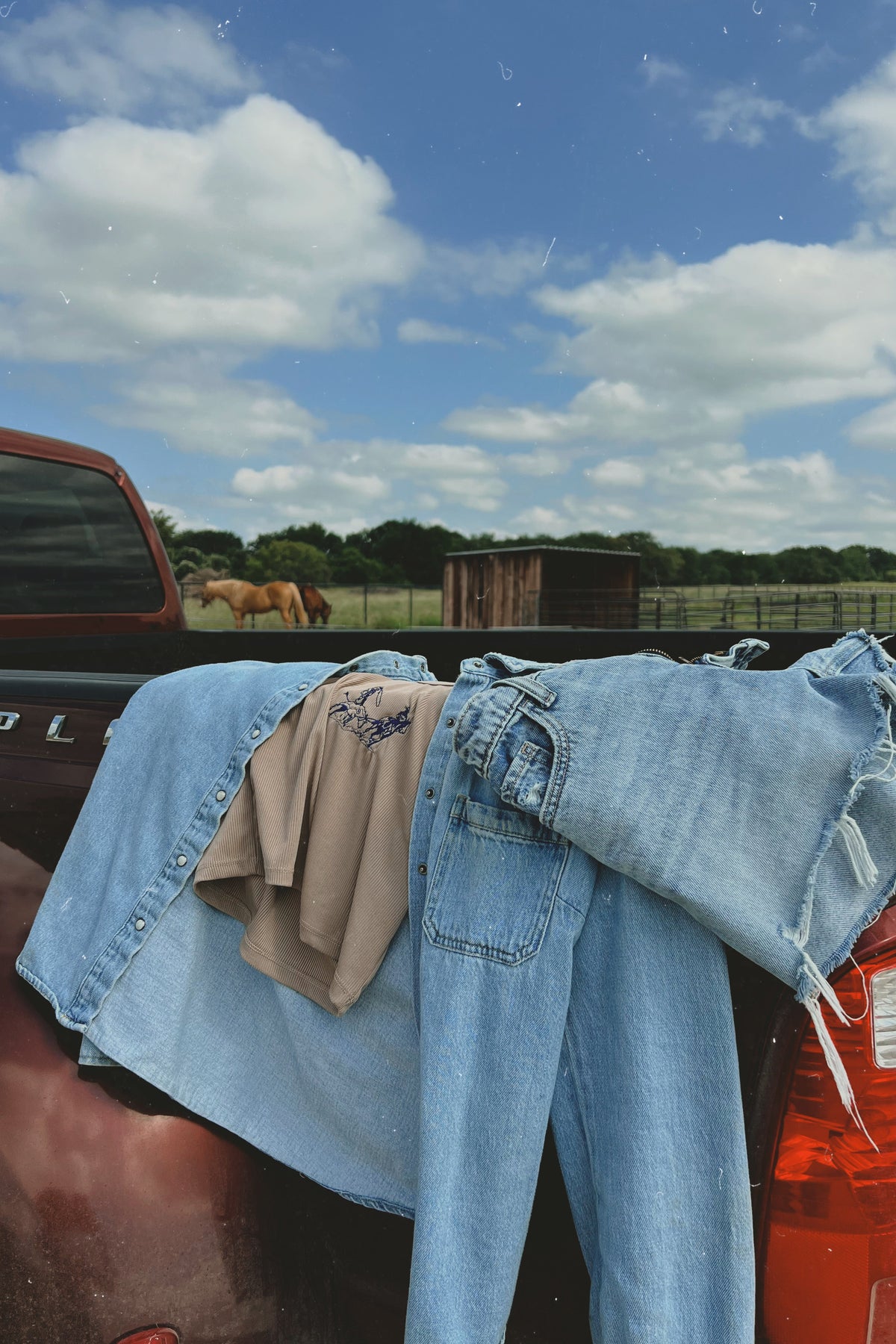 For days in the sun and nights under arena lights. These high-rise denim shorts bring a classic fit with a twist- featuring embroidered “lucky you” detailing on the back and a moderate inseam that is perfect for anyone.