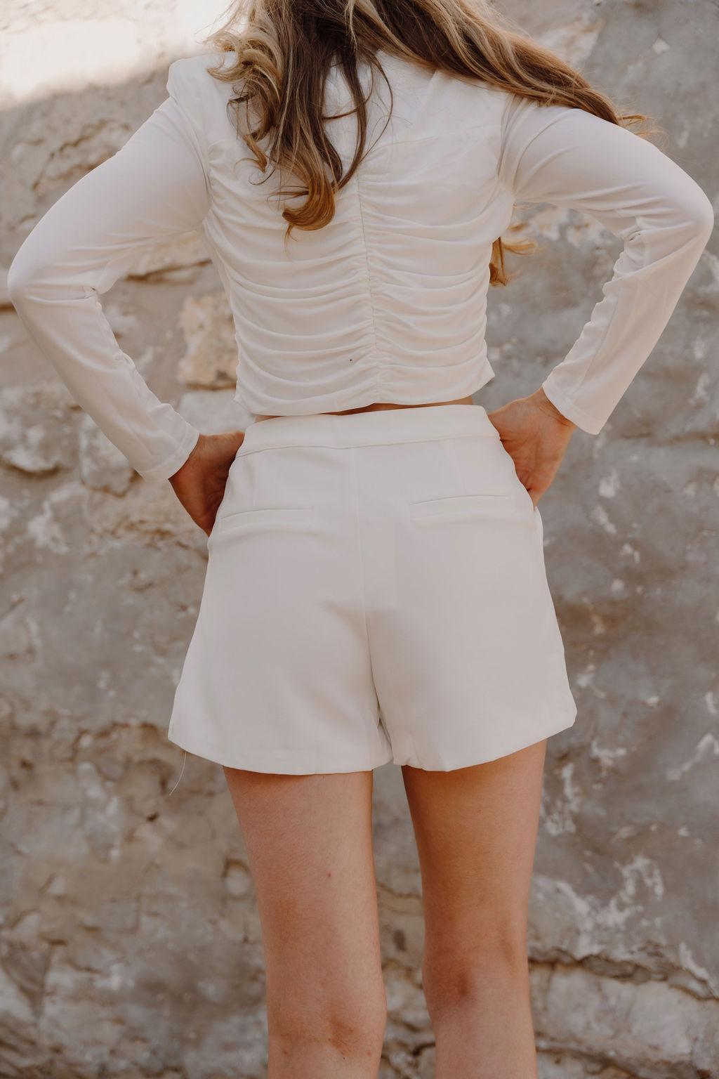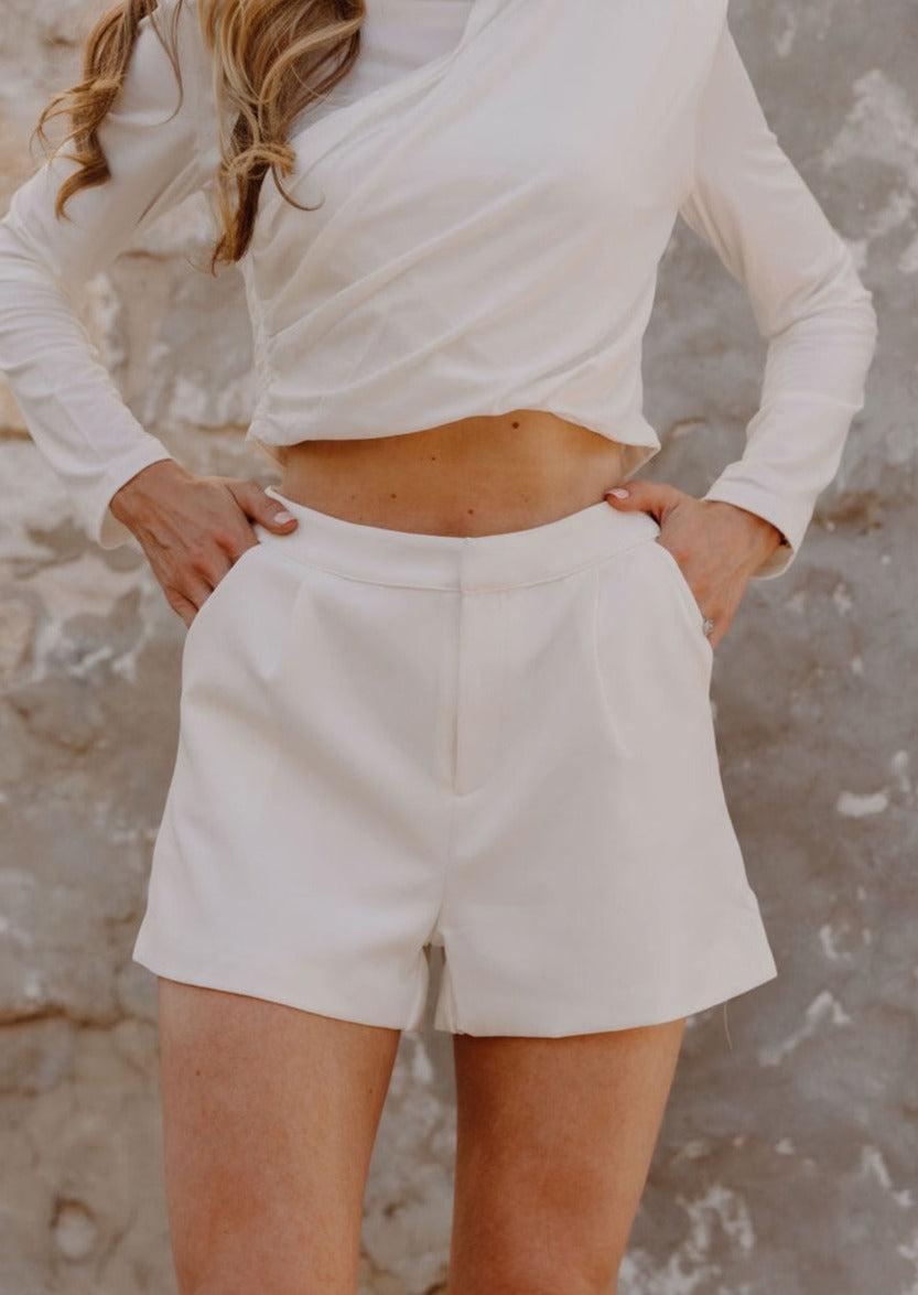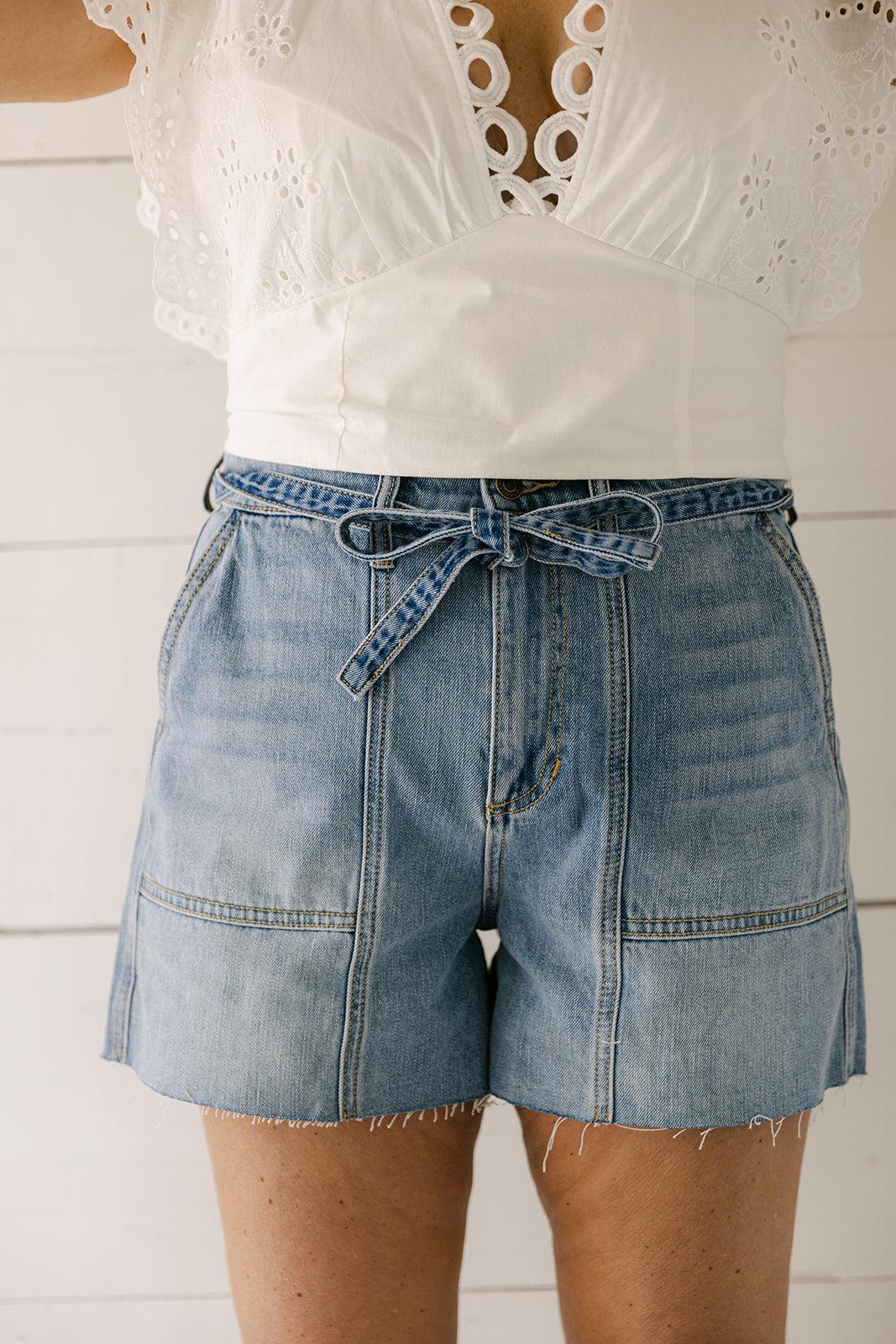 Put a fresh twist on your summer staples. These high-rise shorts feature a flattering tie waist and raw cut hem for an easygoing, contemporary vibe. Designed too sit comfortably at the waist, they blend structure with softness- perfect for dressed-up or casual weekends.