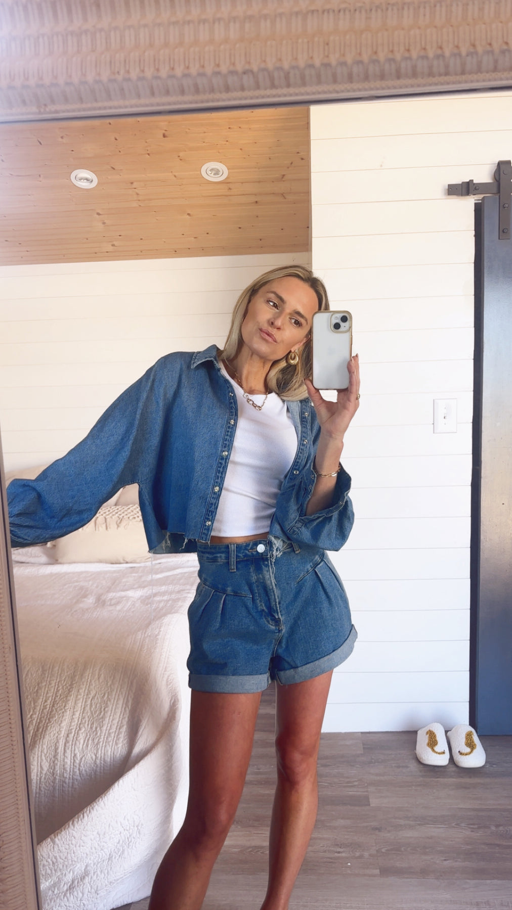 These super high-rise denim shorts feature a flattering fit and a released hem for that perfectly undone finish. Easy to pair, easy to love—your warm-weather staple just leveled up.
