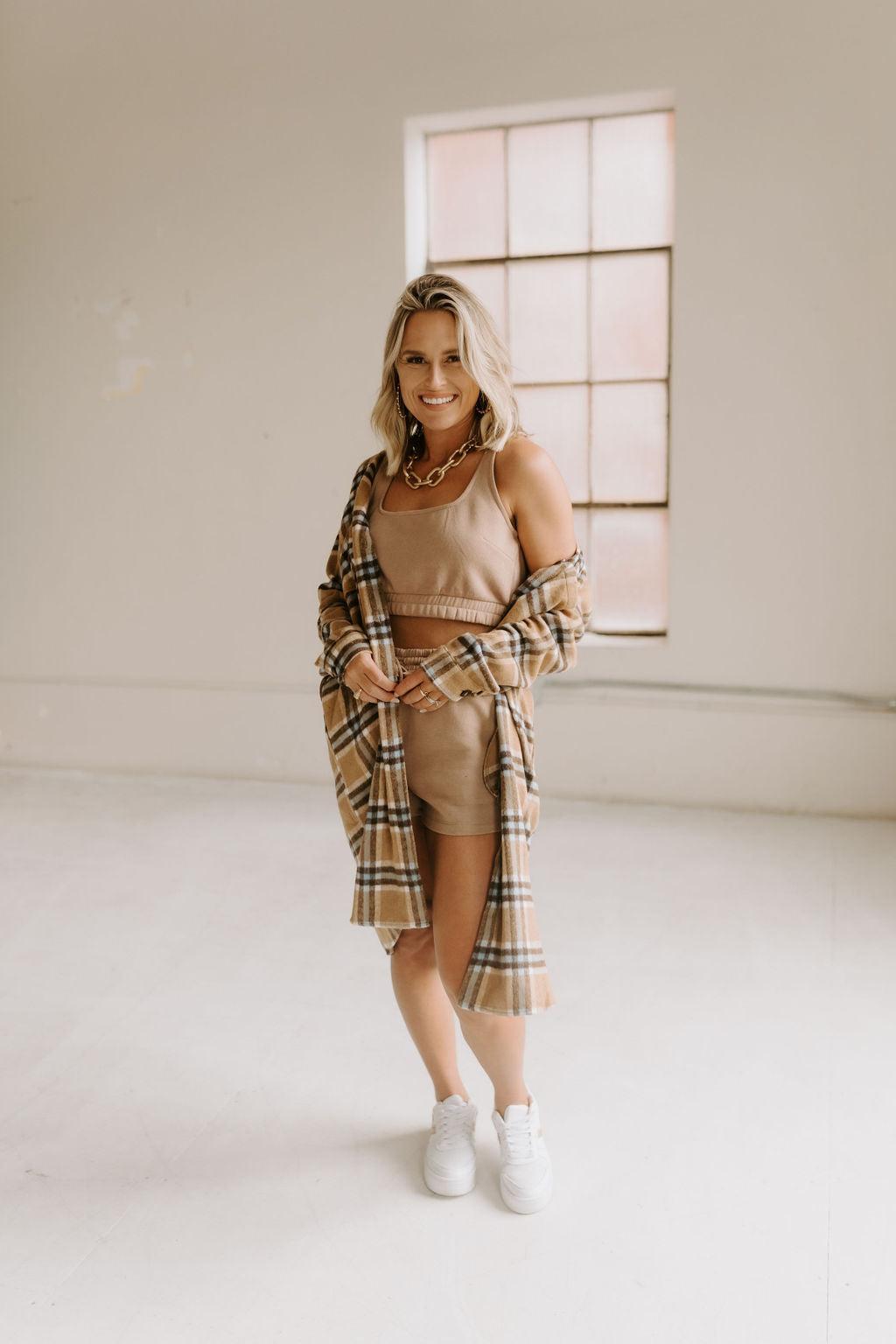 The perfect short for deer camp weekends with a good cup of coffee or just a fun addition to your basics wardrobe instead of those boring track shorts ;). These olive fleece shorts feature a relaxed fit, soft brushed interior, and easy elastic waistband. Finished with side pockets and tonal “Good Babes Sporting Club” embroidery — a quiet nod to vintage sport.