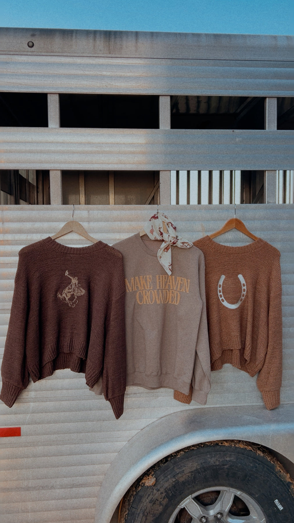 Half-zip pullover featuring a relaxed fit and as soft, comfortable fabric. Elevated with an embroidered bucking horse, this sweatshirt is perfect for layering or wearing on its own.