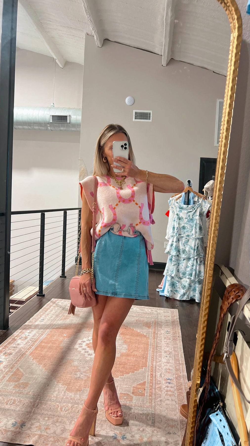 A lucky layer with a feminine twist. This sweater vest features a subtle horseshoe pattern and a charming side-bow detail for a touch of softness. Perfect for layering through the seasons—playful, polished, and full of character.