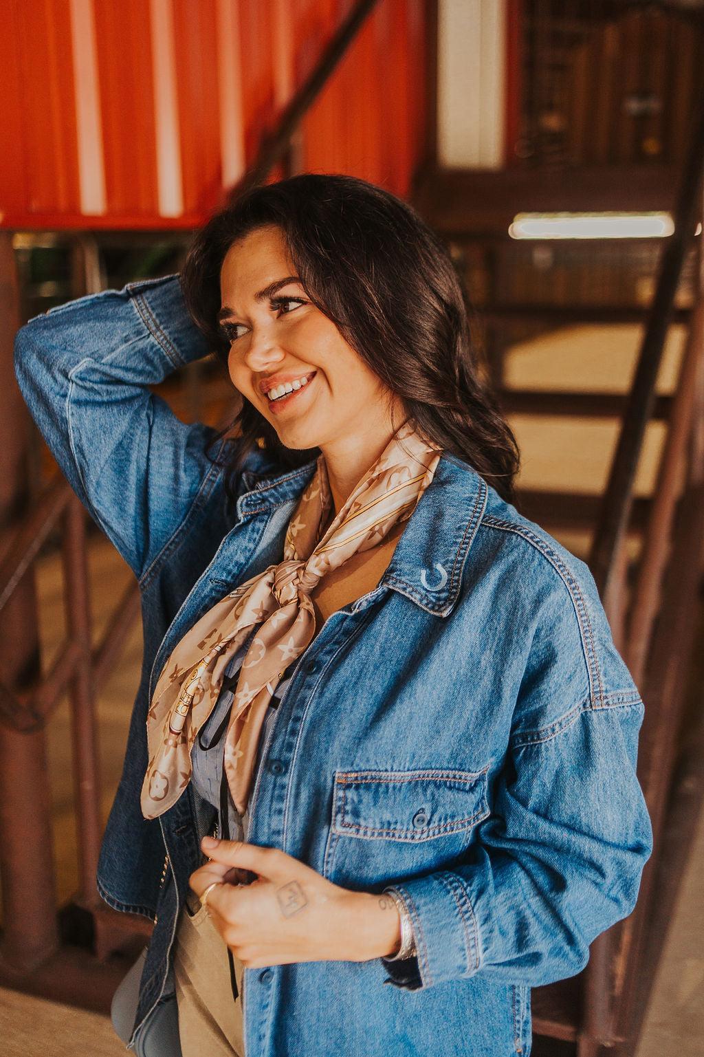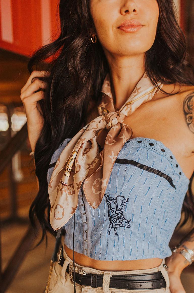 A silky-soft wildrag in neutral tones with a western-inspired motif. Lightweight, versatile, and ready to style your way.