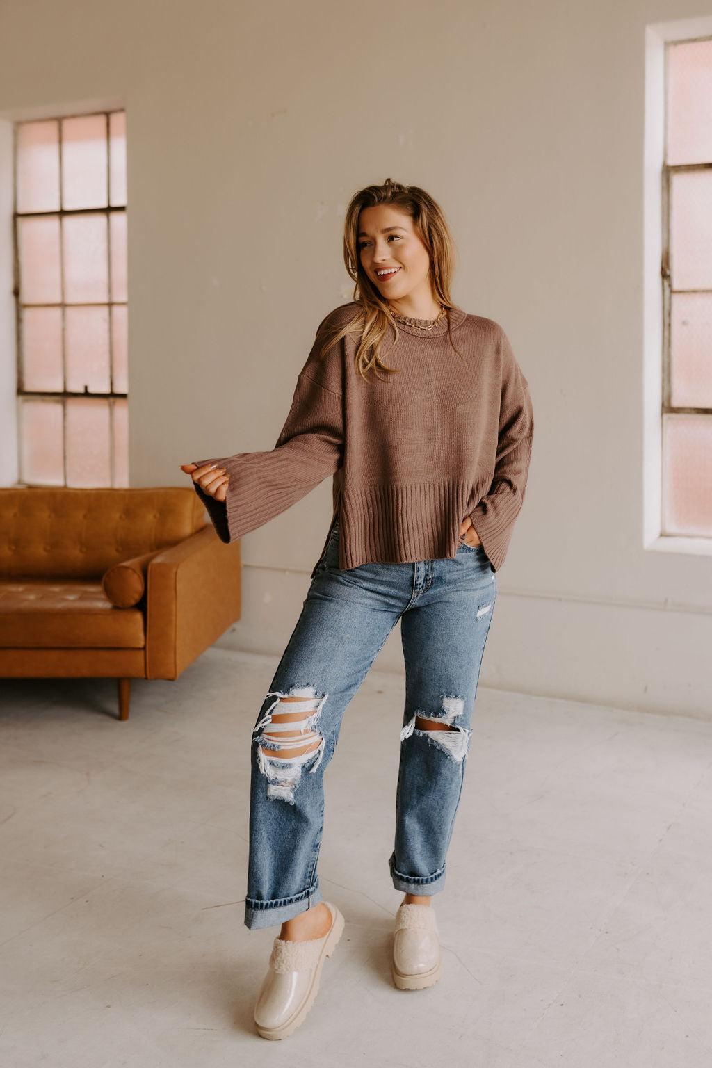 These super high-rise flare jeans are inspired by classic ‘70s silhouettes, featuring a flattering wide leg, knee distressing, and a 34" inseam. Finished with a button closure, zip fly, and 5-pocket styling—perfect for elevating your everyday denim lineup. Not to mention, they have a GREAT stretch.