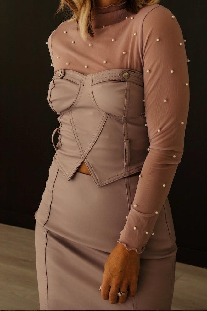 Add a classic touch to your wardrobe with this two-toned, pale pink & ivory vertical striped button down. Great basic for layering & styling all year round!