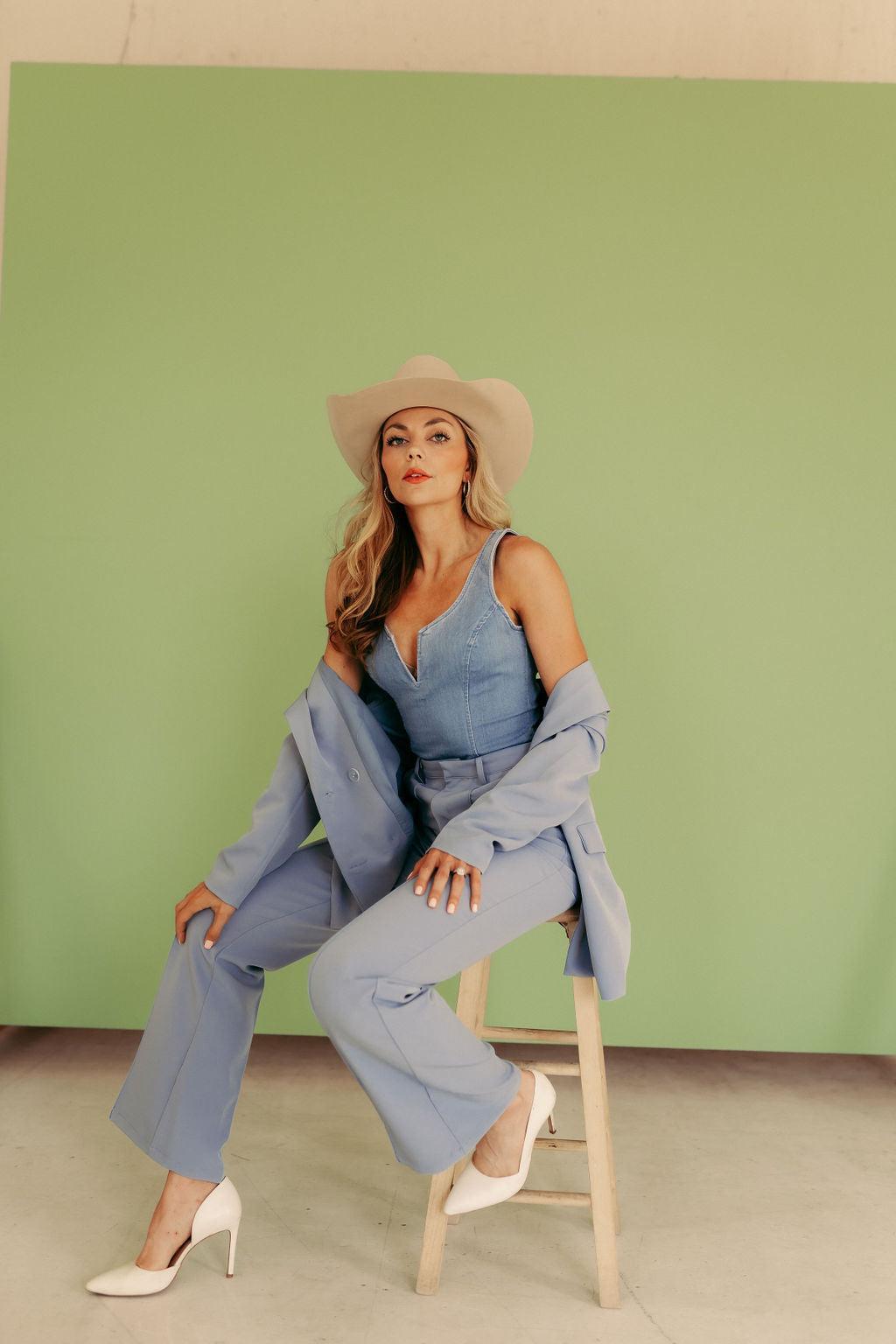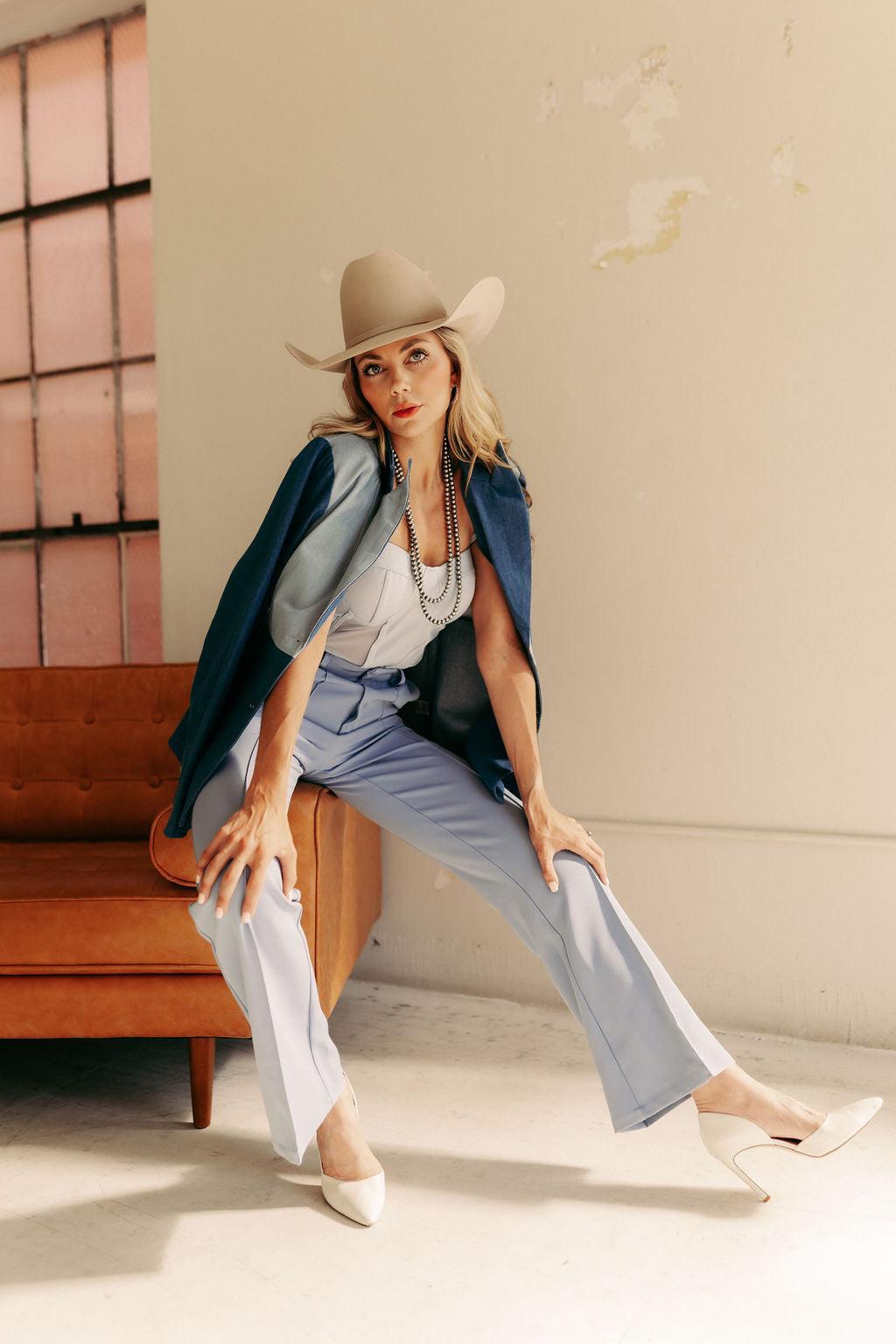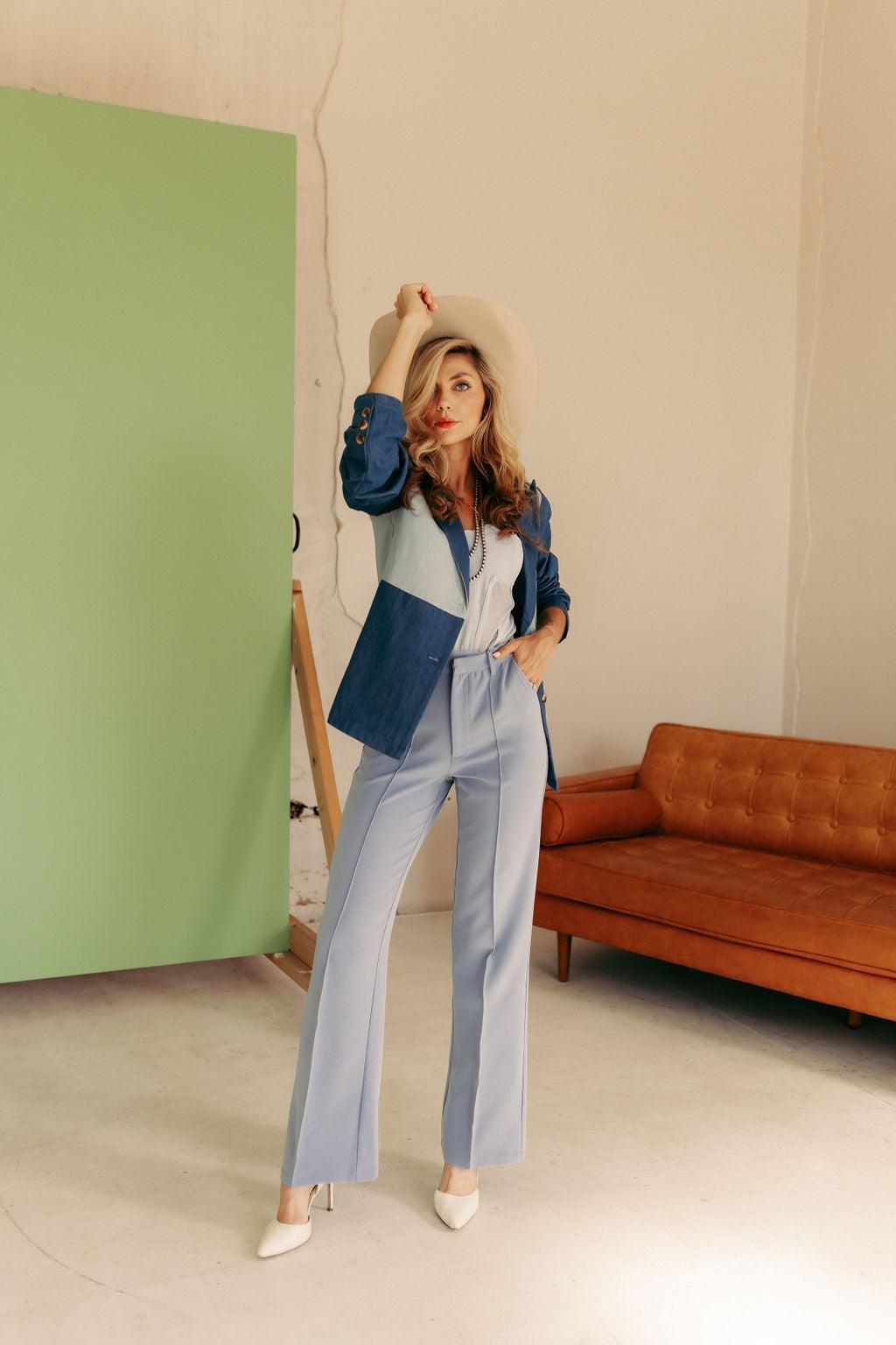 Clean, classic, and made to flatter. This high-waisted boot cut trouser features a timeless wash, single button closure, and a structured fit with minimal stretch. Designed for a tailored look with premium denim feel—effortless to dress up or down.