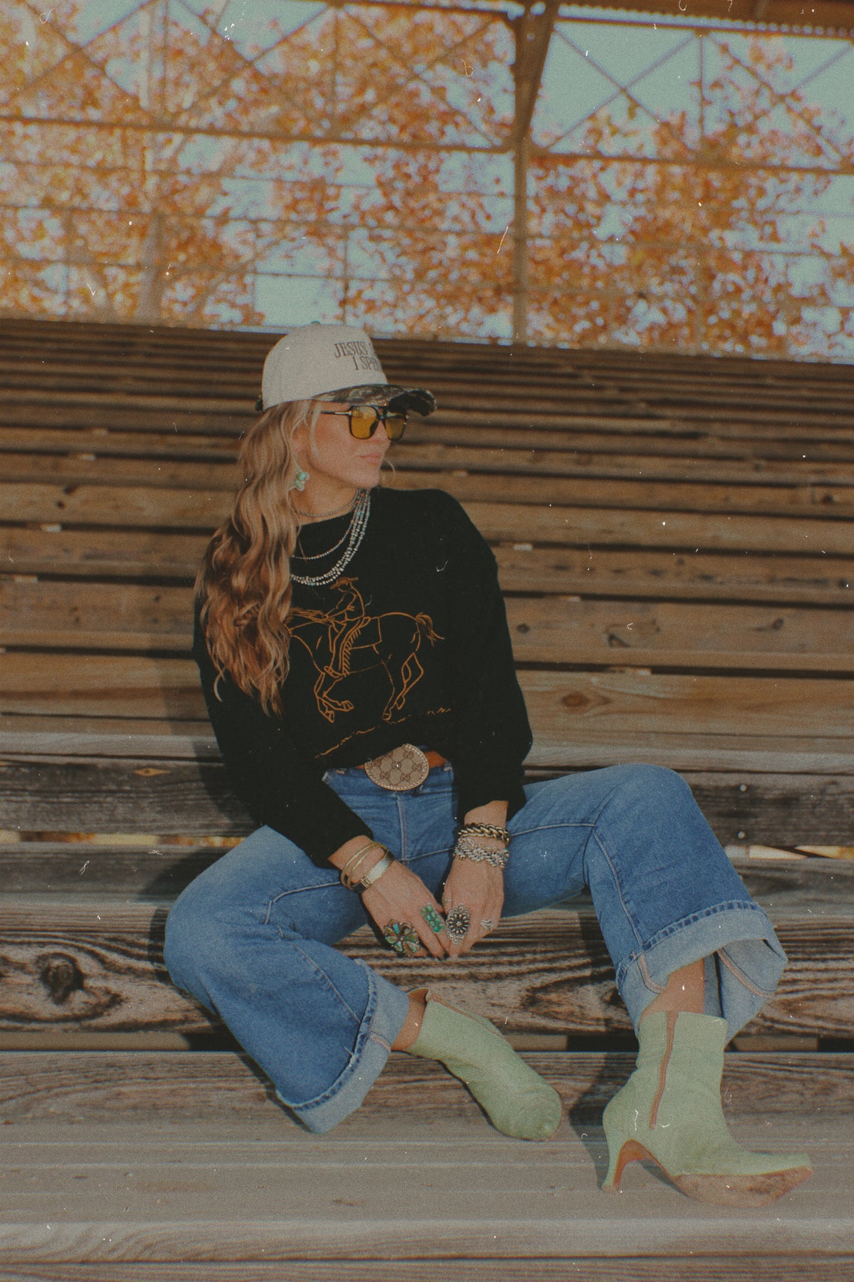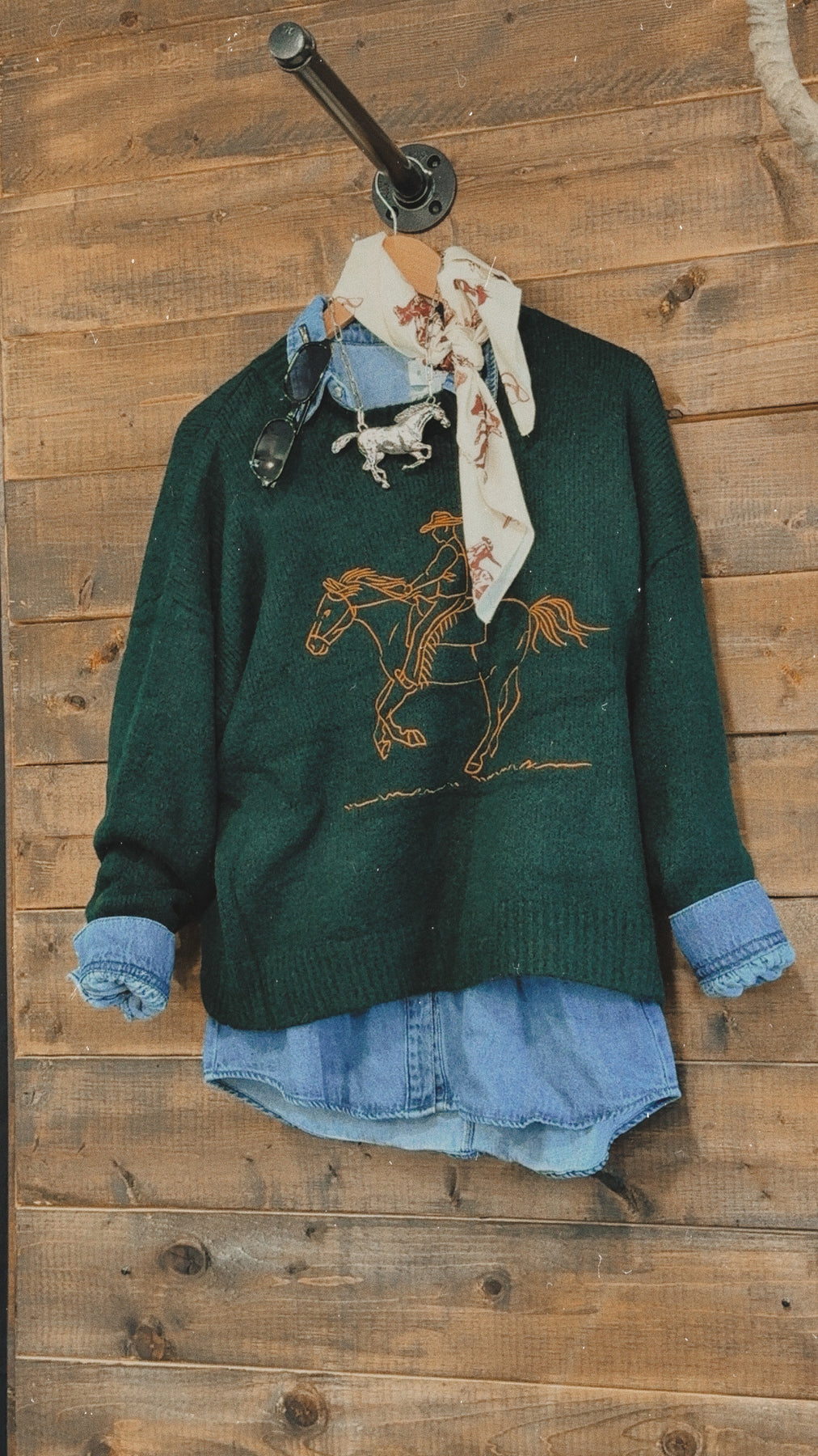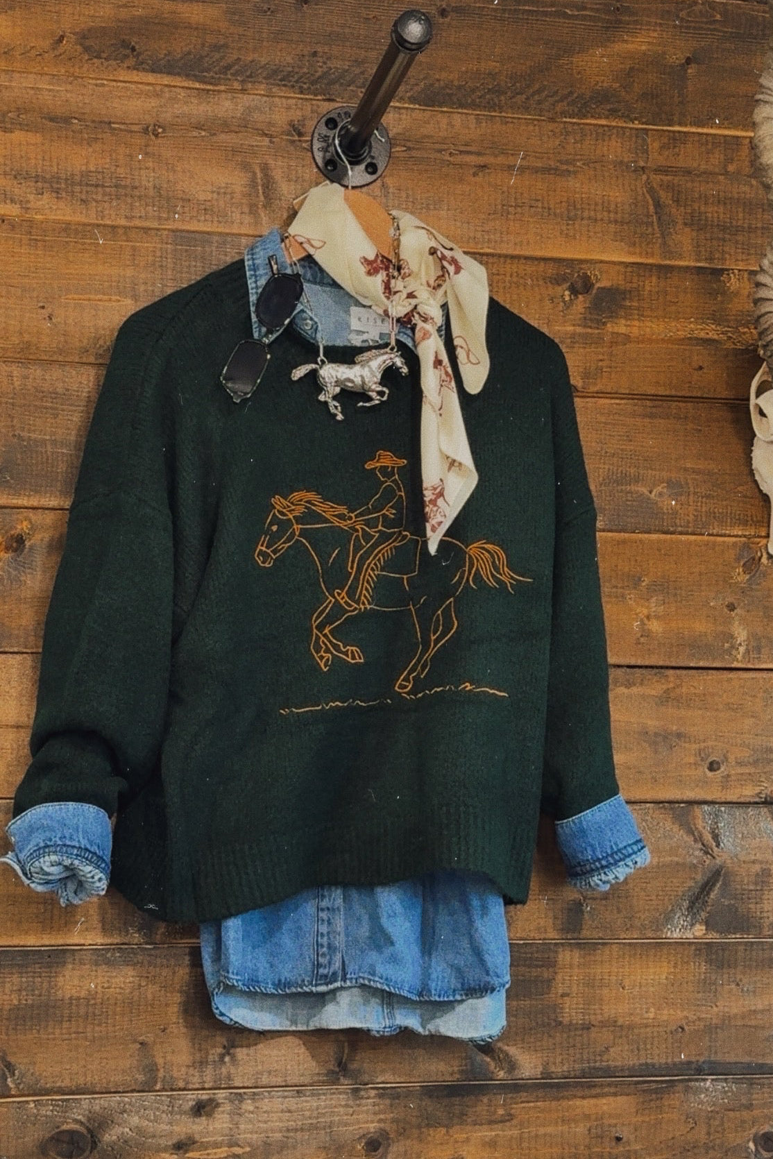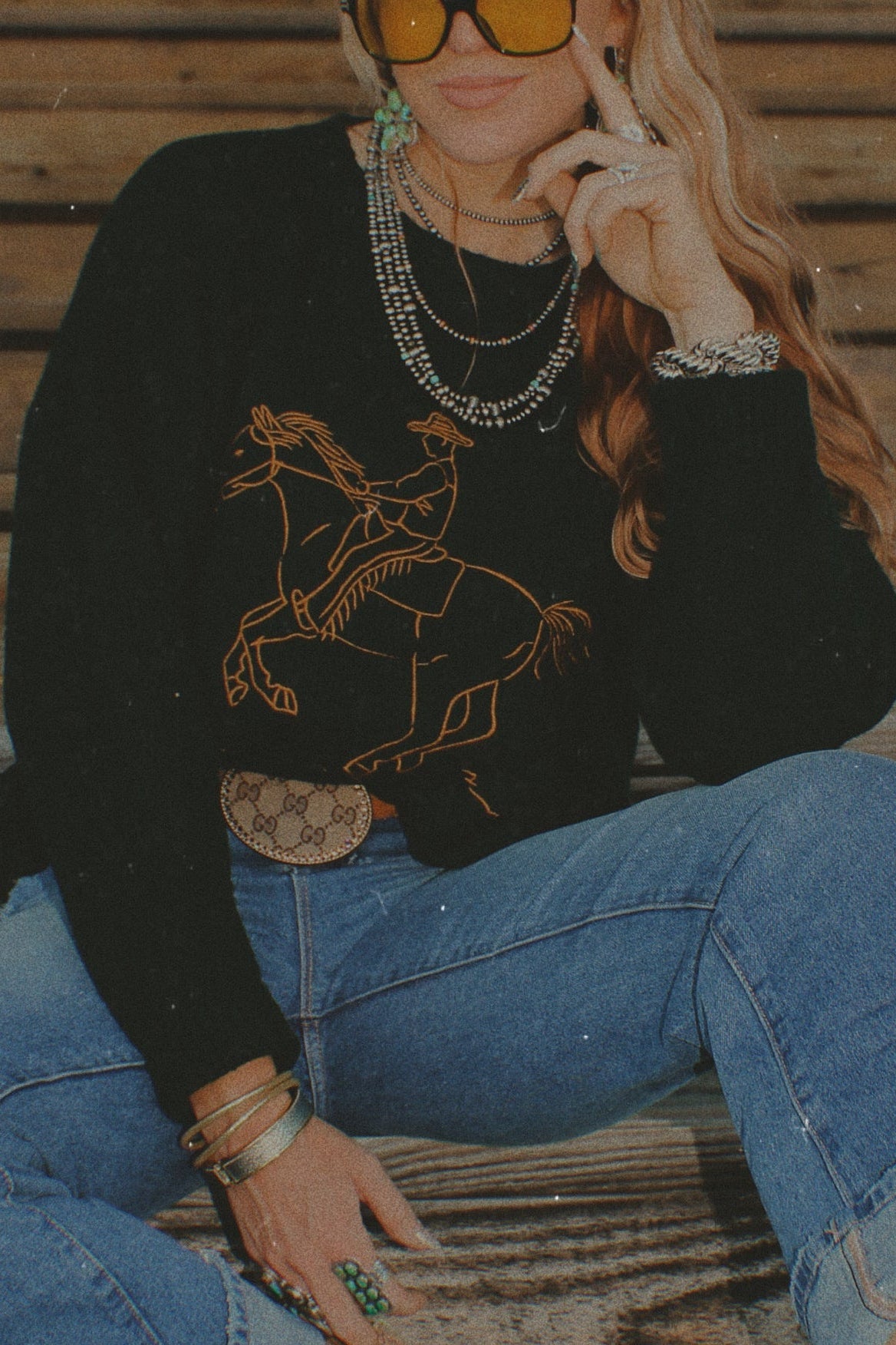 A little classic, a little cowgirl. This Vaquero Sweater is your go-to layer for daytime strolls on the Vegas Strip during NFR. Featuring timeless equestrian-inspired design and a cozy, luxe knit blend, it brings elevated Western vibes to any look. Pair it with your favorite skirt and boots for an effortlessly cool, rodeo-ready outfit.